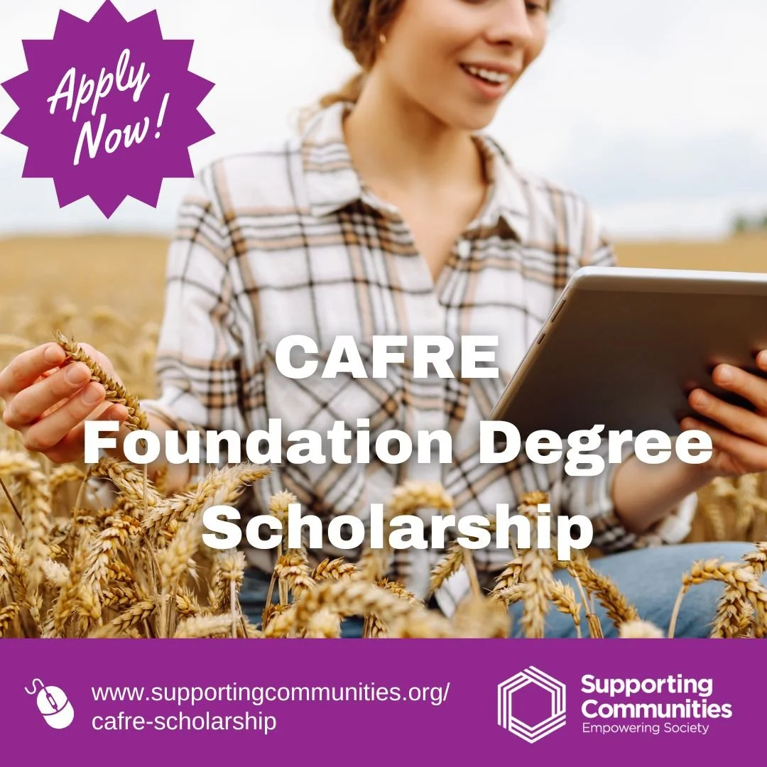 Supporting Communities is delighted to offer a 2-year scholarship programme for students currently in Year 14 (Upper Sixth) in the Ballymena area or students in their final year of the Level 3 Diploma in Agriculture at the College of Agriculture, Food and Rural Enterprise (CAFRE).
